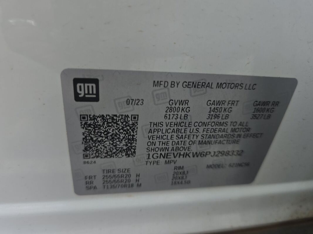2023 CHEVROLET TRAVERSE 3.6 2LT AWD 40,199 miles. Exterior: White. Interior: Black. Condition grade: 4/5. Located in Oceanside, CA.