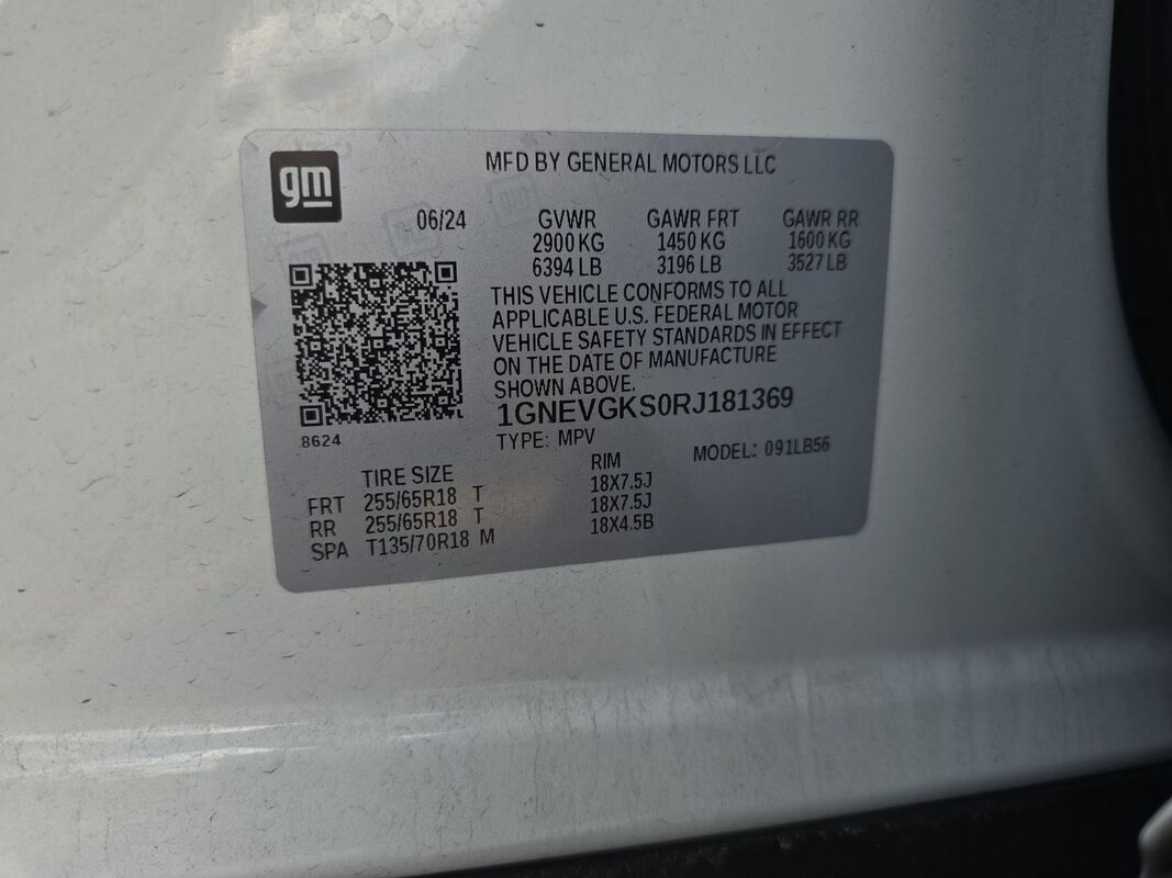 2024 CHEVROLET TRAVERSE 2.5 TURBO LT AWD 51,137 miles. Exterior: White. Condition grade: 3.7/5. Located in West Palm Beach, FL.