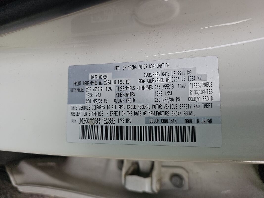 2024 MAZDA CX-90 3.3 TURBO SELECT AWD 44,573 miles. Exterior: White. Interior: Black. Condition grade: 4.3/5. Located in Portland, OR.