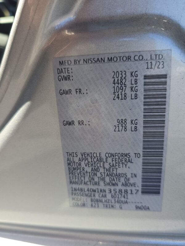 2024 NISSAN ALTIMA 2.5 SV AWD 50,075 miles. Exterior: Silver. Interior: Black. Condition grade: 4/5. Located in Oceanside, CA.