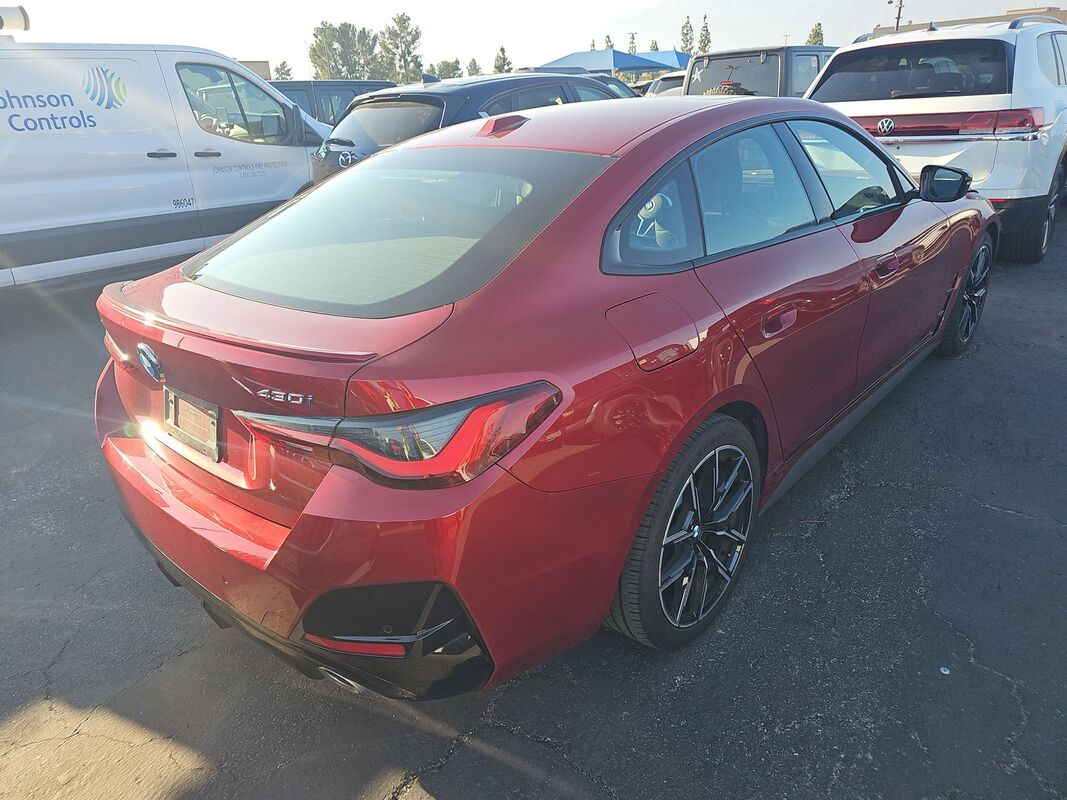 2025 BMW SERIES 4 430I XDRIVE GRAN COUPE MSPORT 14,722 miles. Exterior: Red. Interior: Black. Condition grade: 4.6/5. Located in Fontana, CA.