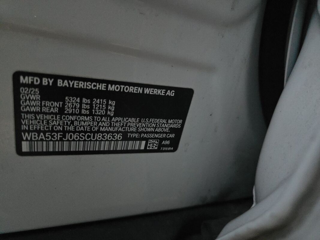 2025 BMW SERIES 5 530I XDRIVE 21,412 miles. Exterior: White. Condition grade: 4.5/5. Located in Tolleson, AZ.