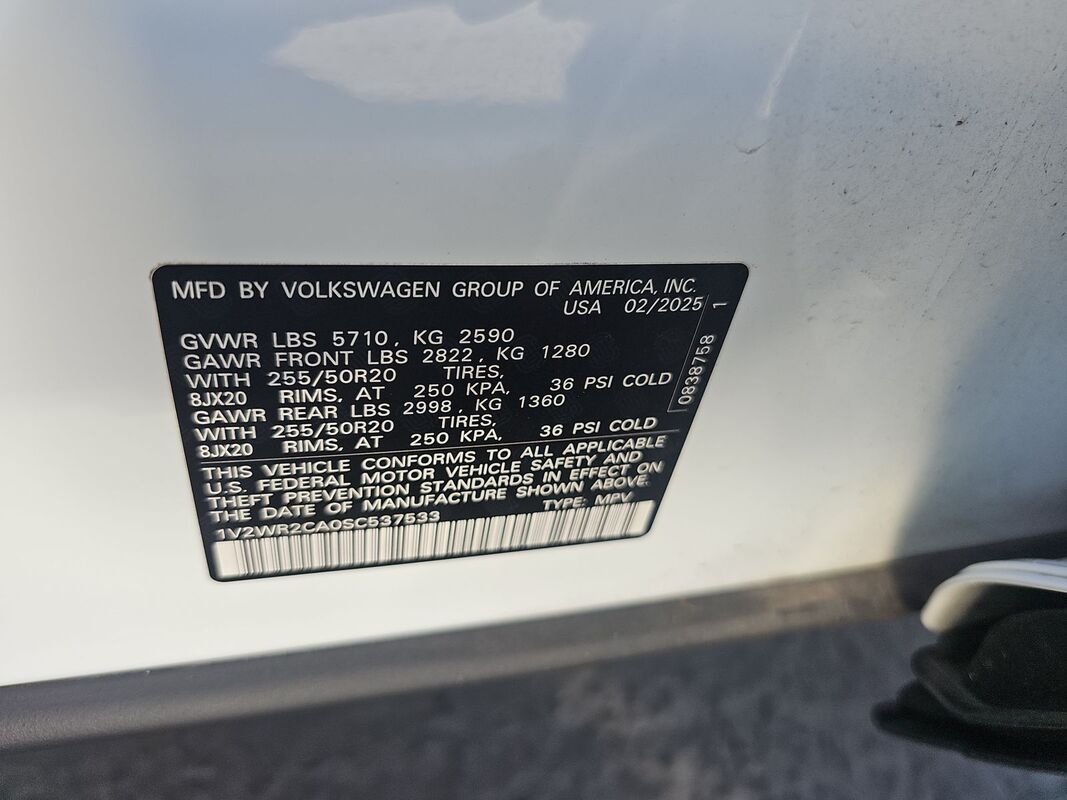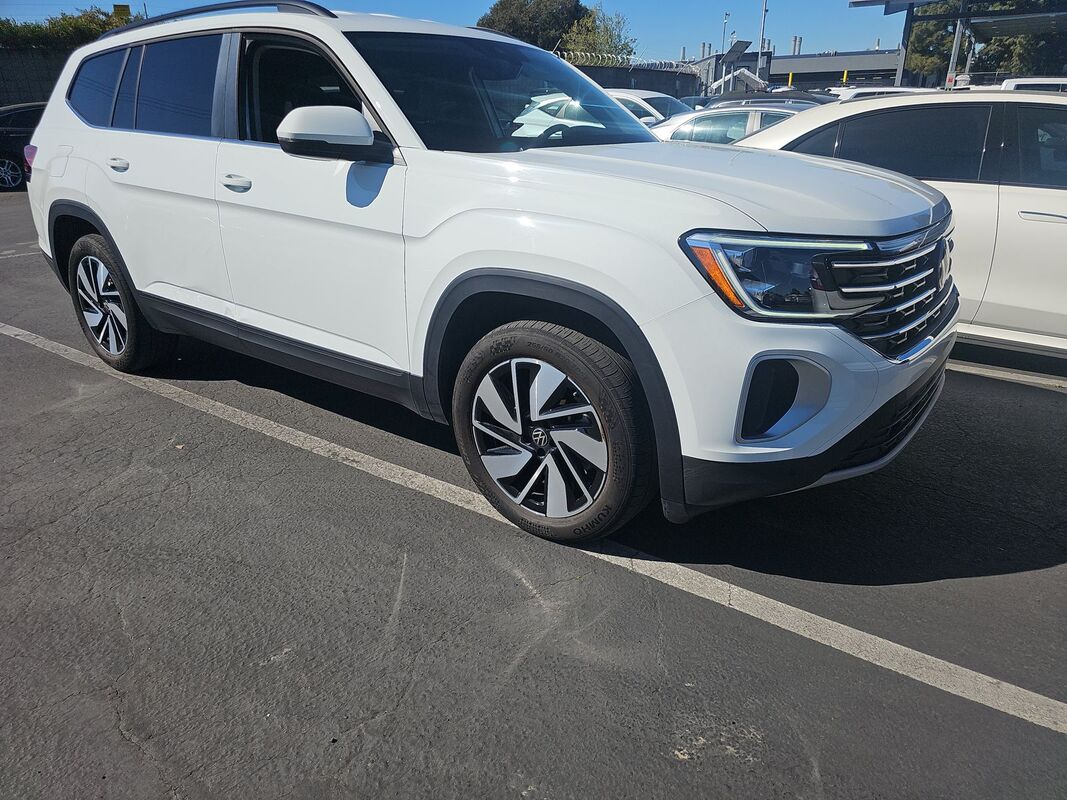 2025 VOLKSWAGEN ATLAS 2.0 TURBO SE W/TECHNOLOGY FWD 27,369 miles. Exterior: White. Interior: Black. Condition grade: 3.6/5. Located in Hayward, CA.