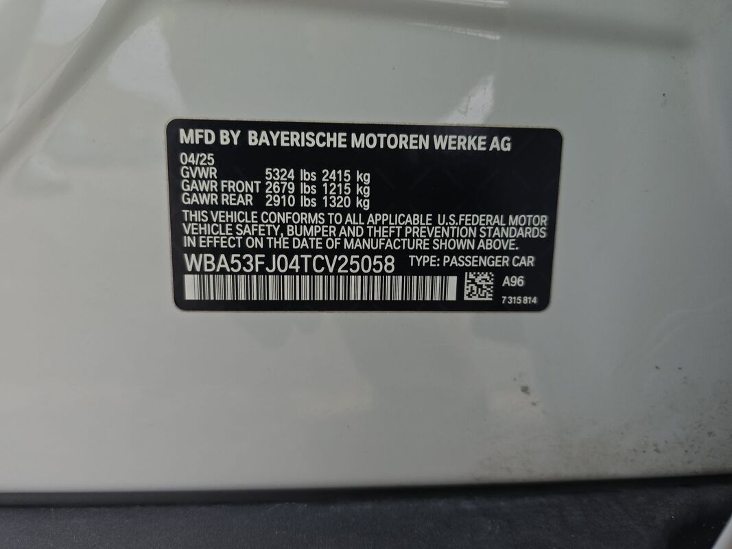 2026 BMW SERIES 5 530I XDRIVE 21,714 miles. Exterior: White. Condition grade: 4.5/5. Located in Maple Grove, MN.